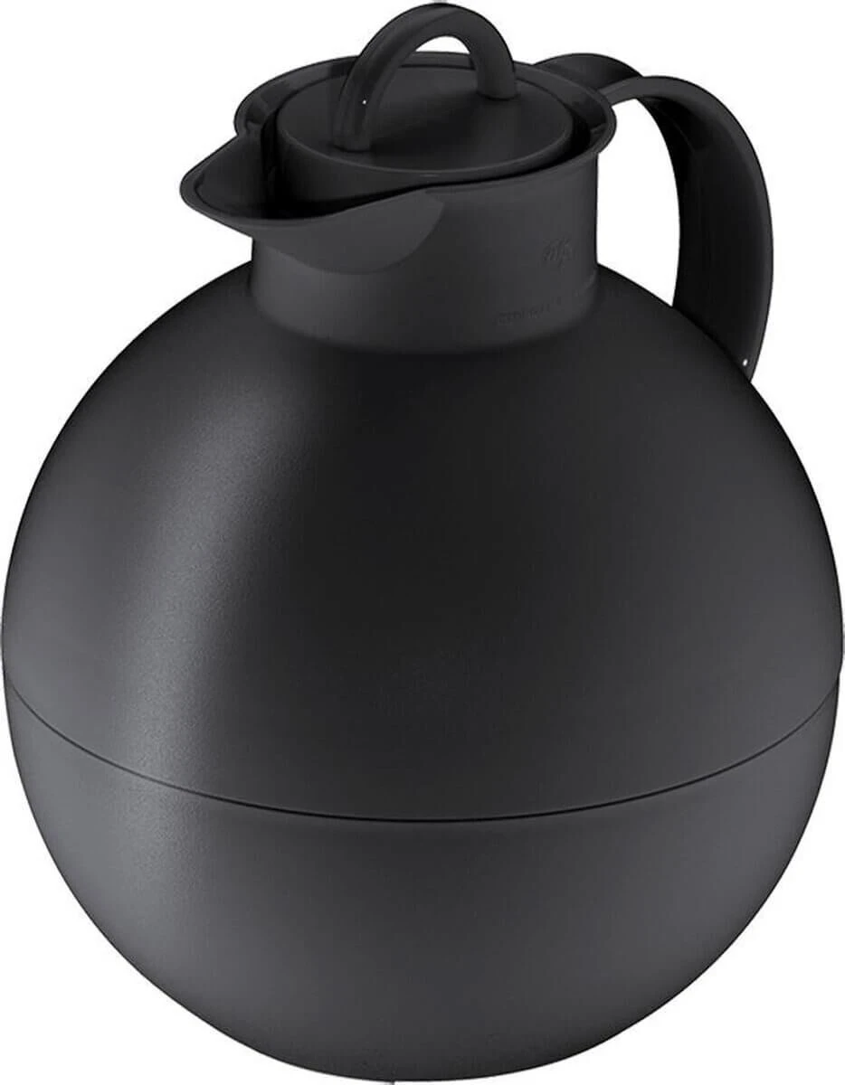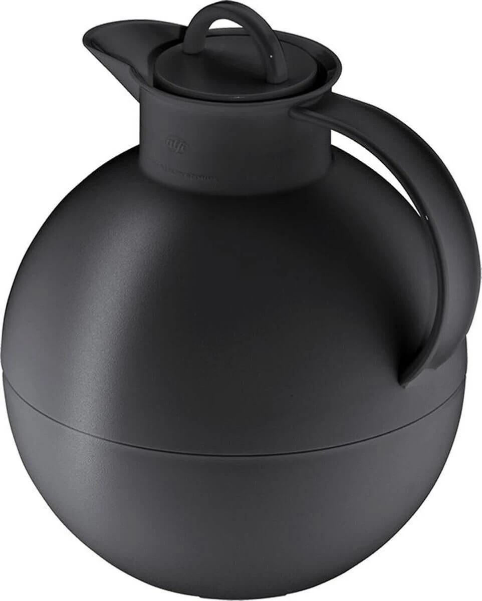De Alfi Kugel thermoskan is dubbelwandig en heeft een inhoud van 940 ml. De buitenkant van de thermoskan is van mat zwart kunststof en de binnenfles is van alfiDur vacuüm-hardglas voor uitstekende isolatie. Vloeistoffen blijven tot 12 uur warm en tot 24 uur koud. De bolle thermoskan heeft een diameter van 17,5 cm en is 20,7 cm hoog. Gebruik de thermoskan voor het langdurig op temperatuur houden van warme en koude dranken.