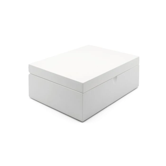 De theedoos van Bredemeijer is gemaakt van wit bamboe. De kist heeft een compacte afmeting. Het kistje wordt geleverd met vier blikjes en een theemaatlepel voor het bewaren, serveren en presenteren van losse thee.