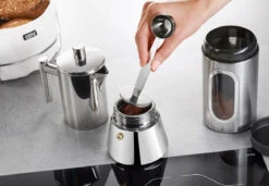 De Gefu Tamino tamper is gemaakt voor het gemakkelijk maken van de koffieroutine. Gemalen koffie kan gemakkelijk afgemeten worden met de maatlepel. Na het vullen van de piston met de koffie kan de koffie goed aangedrukt worden met de tamper.