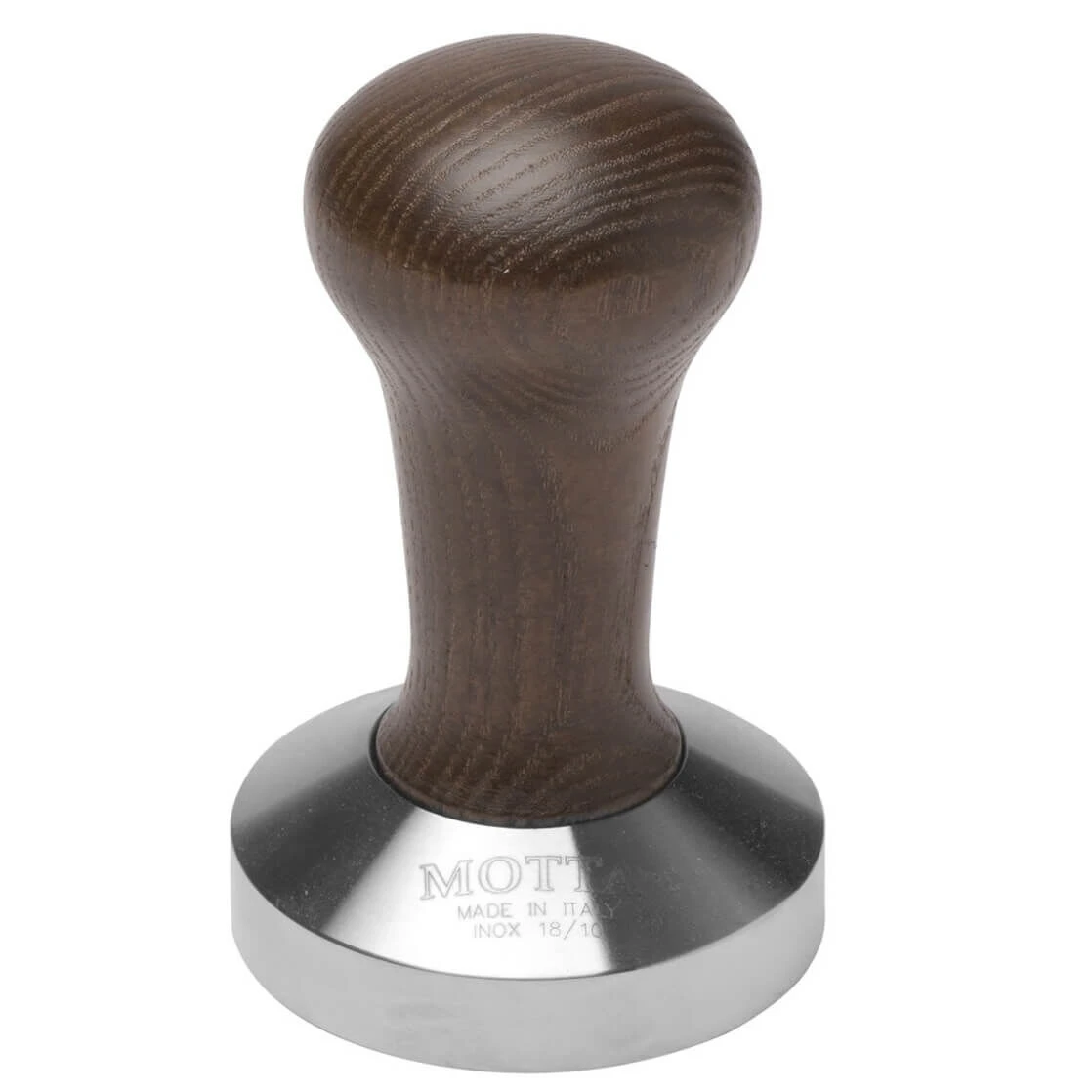 De luxe motta koffietamper heeft een roestvrijstalen basis. De donkerbruine houten greep licht warm in de hand. Het gewicht van 350 gr helpt bij het aantampen van de koffie in het piston. De tamper is geschikt voor pistons met een diameter van 58 mm.