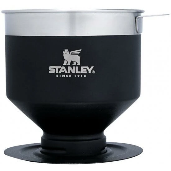 De Stanley The Perfect-Brew Pour Over koffiemaker is gemaakt van dubbelwandig 18/8 roestvrij staal. De roestvrijstalen koffiemaker van Stanley is ontworpen om compatibel te zijn met de meeste Stanley mokken en thermosflessen. De Perfect-Brew Pour Over maakt 1-6 kopjes filterkoffie met de herbruikbare filter.